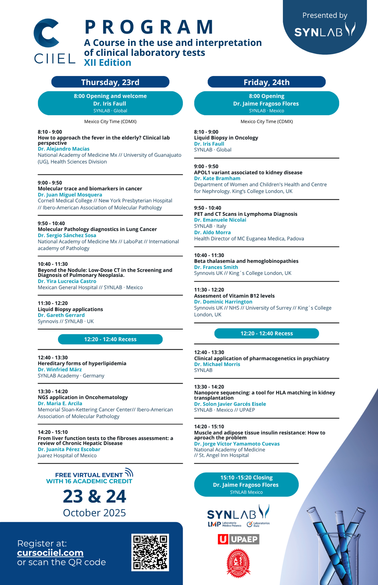 This year we will celebrate our 12th CIIEL Course on the Indication and Interpretation of Laboratory Tests. This FREE academic event features 16 lectures with national and international speakers. Don't miss it! We look forward to seeing you on October 23rd and 24th!
